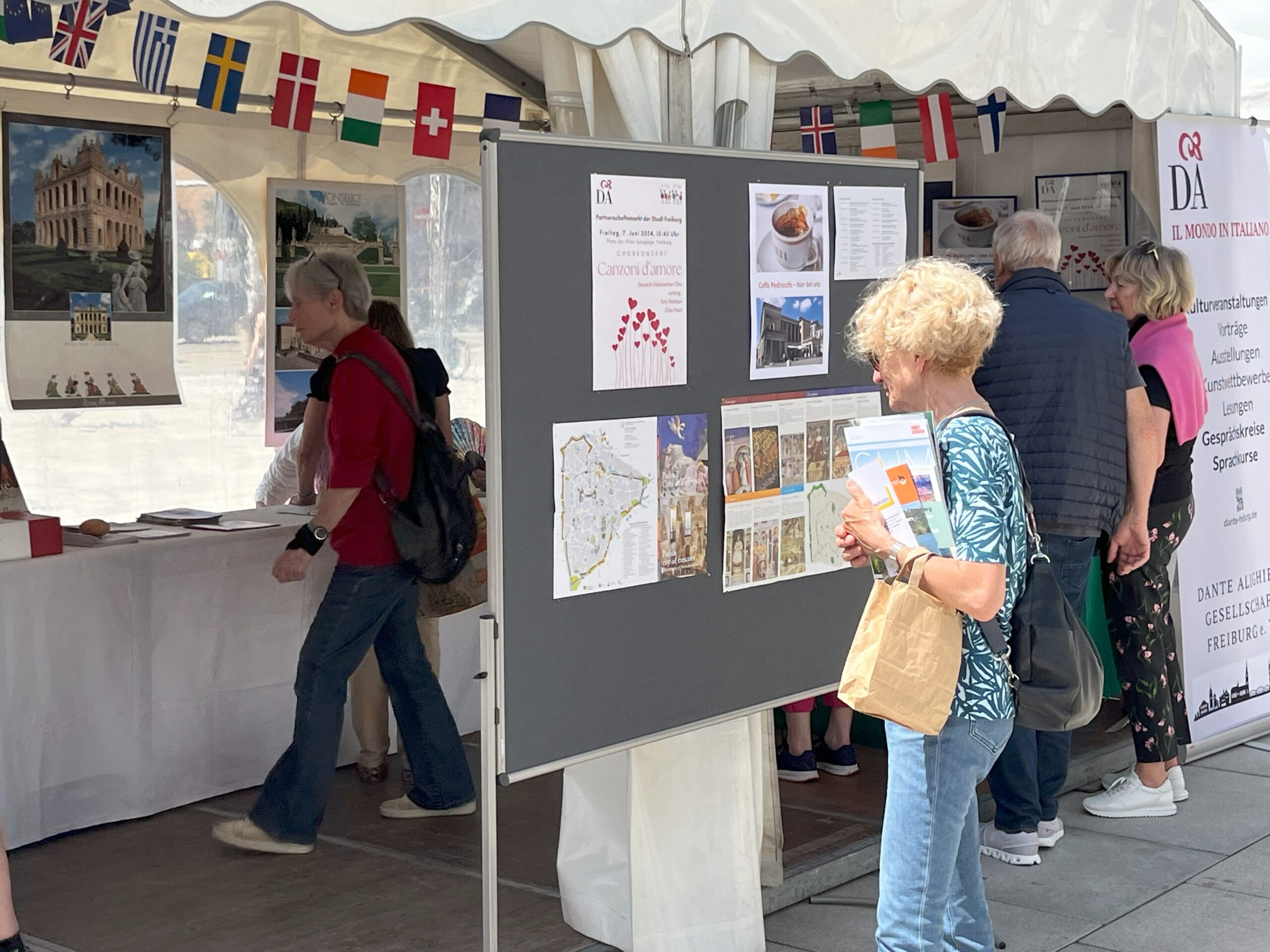Der zweitägige Markt der Partnerstädte Freiburgs findet alle zwei Jahre statt, auch diesmal wieder auf dem Platz der Alten Synagoge. Die Dante Alighieri Gesellschaft Freiburg als offizieller Partnerschaftsverein für die Städtepartnerschaft mit Padua wird mit einem Stand vertreten sein und die Highlights dieser nahe bei Venedig gelegenen italienischen Stadt präsentieren. Auf einer Bühne wird von den Partnerschaftsvereinen und den Partnerstädten ein internationales Programm geboten.